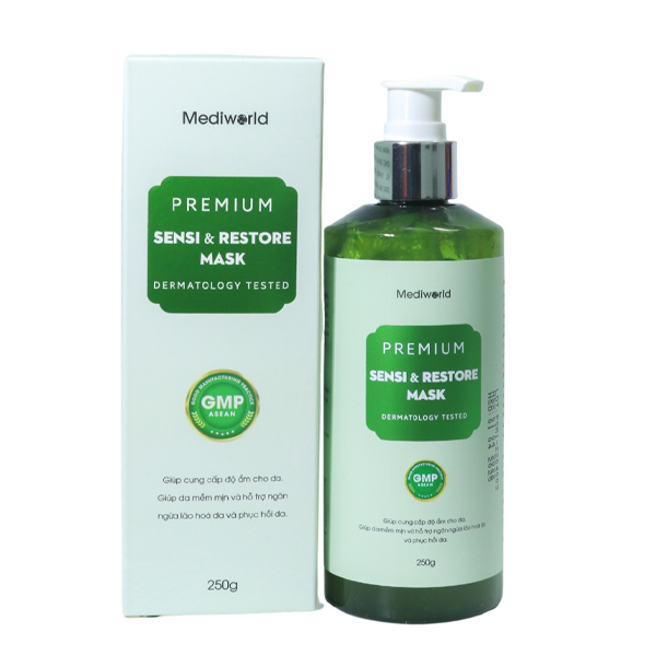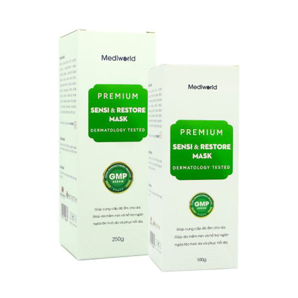 Làn da ửng đỏ, nóng rát khiến các chị em khó chịu. Bạn nên sử dụng sản phẩm có công dụng làm dịu và chiết xuất từ thiên nhiên nhằm tránh gây thêm kích ứng. Mediworld Premium Sensi & Restore Mask là sản phẩm mặt nạ làm sạch sâu bên trong làn da dành cho da nhạy cảm, da kích ứng, da mỏng yếu, mẩn đỏ… Công dụng chính là làm sạch sâu cho da, hỗ trợ phục hồi những tổn thương bên trong da, giảm ngay sốc nhiệt, làm dịu da, kháng viêm, làm đều màu da, sáng da…. Sản phẩm còn giúp cung cấp độ ẩm cho da, làm mềm mịn và hỗ trợ ngăn ngừa lão hóa da nữa.
