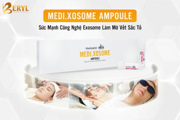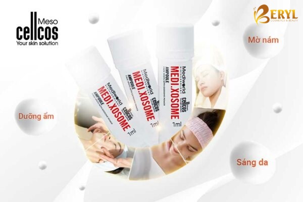 Medi.Xosome Ampoule nằm trong bộ sản phẩm Cellcos Meso, là tinh chất dưỡng sáng da và mờ sạm nám. Ứng dụng công nghệ Exosome từ nuôi cấy tế bào thực vật kết hợp với Peptide, sản phẩm giúp làm mờ dấu hiệu lão hóa, mang lại làn da căng bóng và sáng mịn.